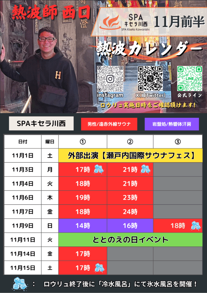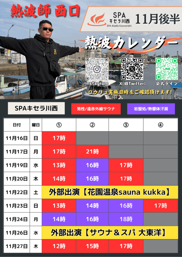 当店所属の熱波師 西口が皆さまにアツい熱波を届けます。