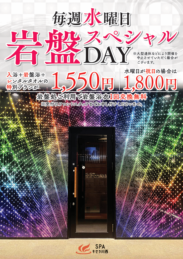 ・特別プラン『入浴+岩盤浴+レンタルタオル』がこの日だけの限定価格に!