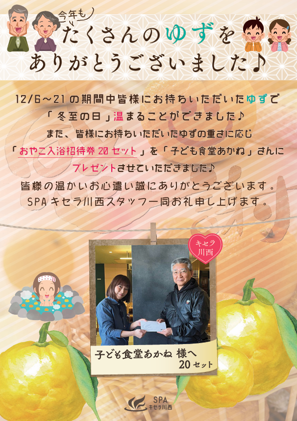 12/6~12/21の期間中に皆様にお持ちいただいた柚子で