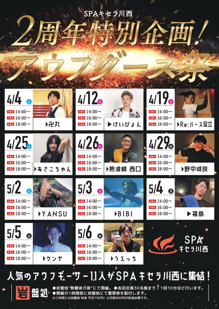 岩盤処「熱響体汗房」または浴場内の「遠赤外線サウナ」にて、アウフグースイベントを開催致します。是非ご参加ください!